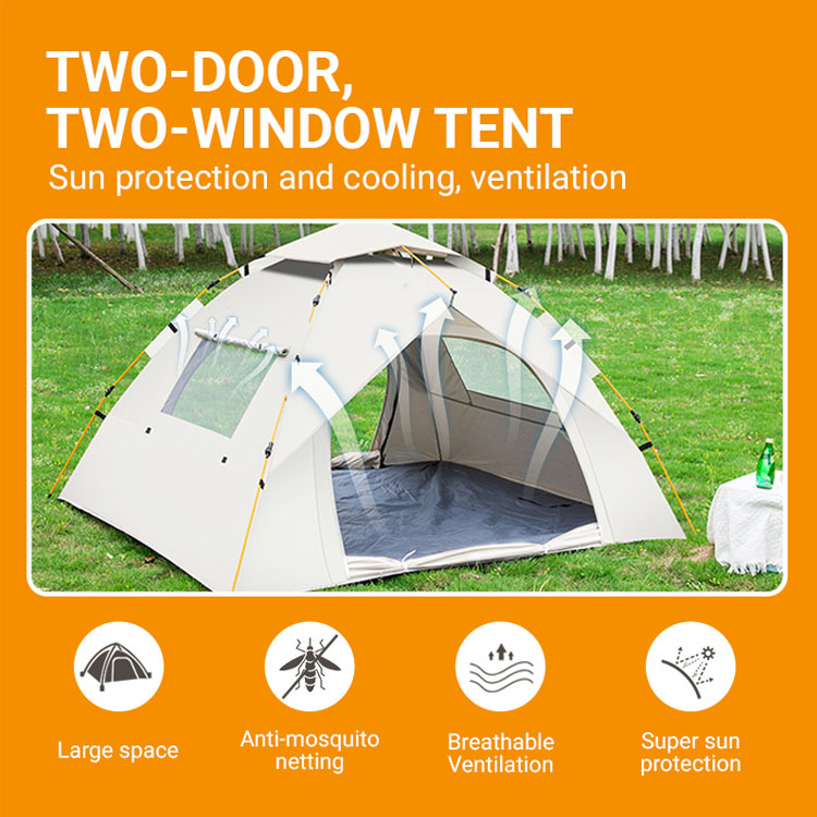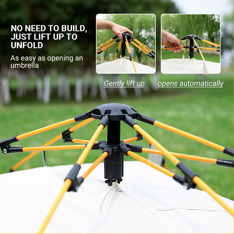 Verfügt über eine innovative automatische Öffnungstechnologie, die es dem Zelt ermöglicht, innerhalb von Sekunden in seine volle Form zu springen, wodurch komplizierte Montagevorgänge entfallen und wertvolle Campingzeit gespart wird.