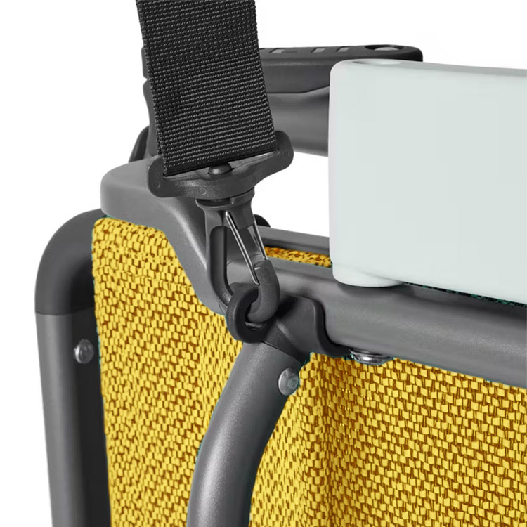 Enthält eine robuste, leichte Tragetasche mit Schultergurt für den einfachen Transport. Im zusammengeklappten Zustand behält der Stuhl ein schlankes Profil, das perfekt in Kofferräume und Ablagefächer passt.