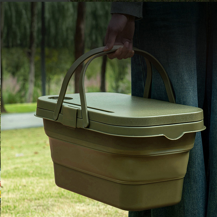 Korb Outdoor Camping Wandern Picknick Aufbewahrungsbehälter. Ihre ultimative tragbare Organisationslösung für Outdoor-Abenteuer. Dieser multifunktionale faltbare Korb kombiniert einen Aufbewahrungsbehälter mit einer integrierten Tischoberfläche. Aus robustem Kunststoff gefertigt, eignet es sich perfekt für Camping-, Wander- und Picknickausflüge.