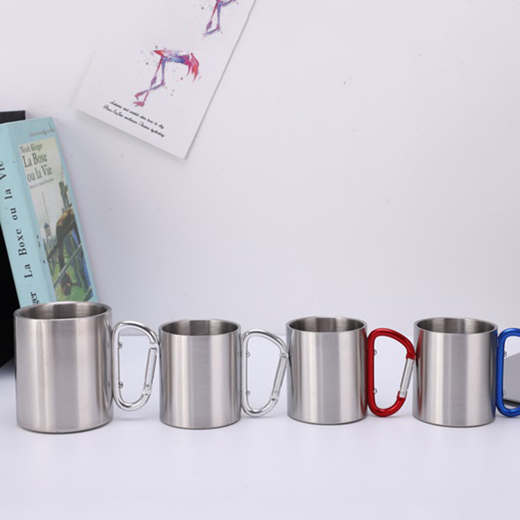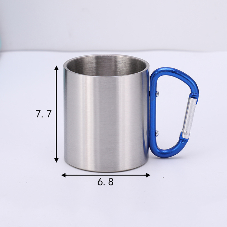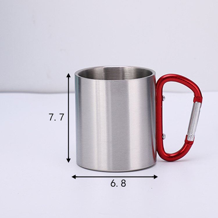 Doppelwandiger Camping-Reisebecher aus Edelstahl. Ihre ultimative tragbare Thermolösung für Outdoor-Abenteuer. Dieser 220-ml-Edelstahlbecher verfügt über eine doppelwandige Vakuumisolierung und einen praktischen Karabinergriff. Perfekt für Reisen, es hält die optimale Temperatur sowohl für kalte als auch für heiße Getränke aufrecht.
