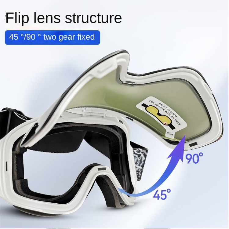Maßgeschneiderte, staubdichte, winddichte UV400-Snowboardbrille für Unisex. Ihre erstklassige Großhandelslösung für Allwetter-Bergsportarten. Diese Unisex-Snowboardbrille kombiniert fortschrittlichen Staub- und Windschutz mit UV400-Technologie. Mit verspiegelten polarisierten Gläsern und einem revolutionären Flip-Magnetsystem bieten sie unübertroffene visuelle Klarheit beim Skifahren und Snowboarden.