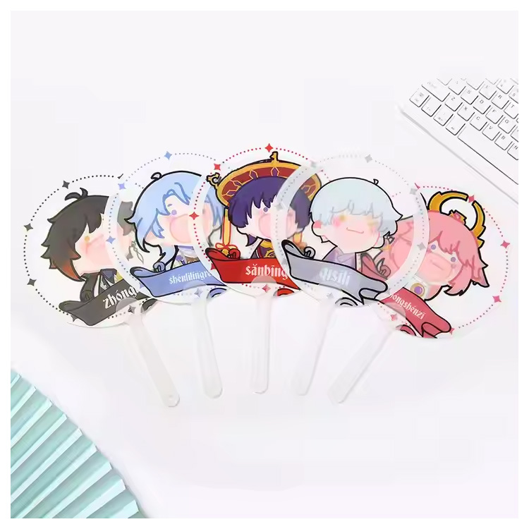 Mini-Anime-Stern-Handfächer aus transparentem, wasserdichtem Kunststoff. Benutzerdefinierte Anime-Handfächer aus transparentem Kunststoff— Leicht, wasserdicht und mit Ihren Lieblingscharakteren oder Ihrem Logo bedruckt. Perfekt für Veranstaltungen, Konzerte, Werbeaktionen oder Souvenirs. Eine unterhaltsame und praktische Möglichkeit, mit Stil cool zu bleiben.