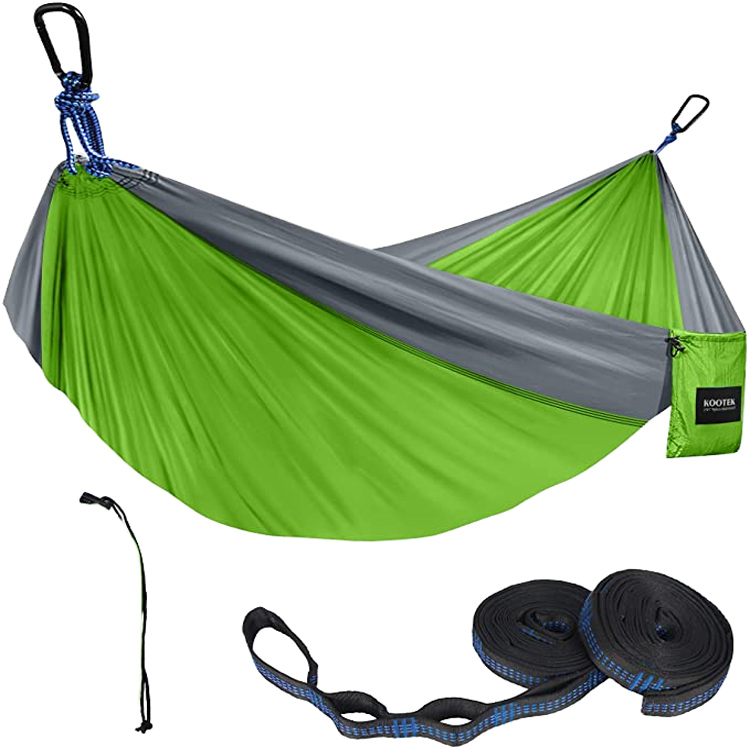 Diese Hängematte besteht aus hochdichtem Nylontaft in Fallschirmqualität, der außergewöhnliche Festigkeit mit Weichheit verbindet. Sie bietet überragenden Komfort und Haltbarkeit und trägt selbstbewusst bis zu 400 Pfund.