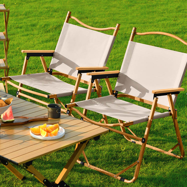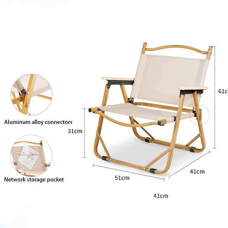 Tragbarer, zusammenklappbarer Reise-Campingstuhl für den Außenbereich. Ihre erstklassige tragbare Sitzlösung für den Innen- und Außenbereich. Dieser beliebte Reisestuhl kombiniert ein leichtes, faltbares Gestell mit eleganten Akzenten aus Stahl und Massivholz. Perfekt für Mahlzeiten im Freien, Entspannung am Strand und Camping-Abenteuer, es bietet sowohl Stil als auch Haltbarkeit.