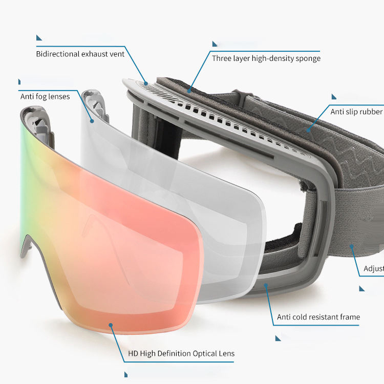 Professioneller Hersteller von Skibrillen, rutschfest, austauschbar. Ihr ultimativer professioneller Sichtschutz für den Wintersport. Diese direkt vom Hersteller stammenden Skibrillen verfügen über ein rutschfestes Design mit austauschbaren Linsenteilen. Das fortschrittliche doppelschichtige Antibeschlagsystem sorgt für kristallklare Sicht, während die helmkompatible Konstruktion sichere und komfortable Leistung bietet.