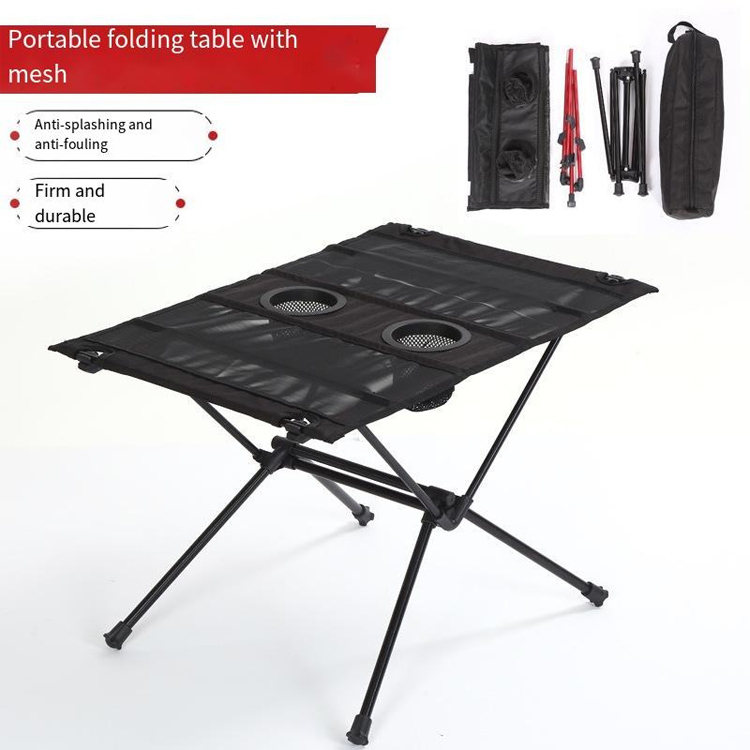 Ultraleichter Campingtisch, faltbarer Tisch aus atmungsaktivem Nylongewebe. Ihre ultimative tragbare Tischlösung für Outdoor-Abenteuer. Dieser ultraleichte Campingtisch verfügt über eine robuste Nylonkonstruktion mit atmungsaktiver Netzoberfläche und integriertem Getränkehalter. Das faltbare Design sorgt für maximale Tragbarkeit bei all Ihren Outdoor-Aktivitäten.
